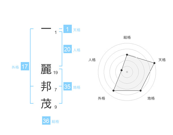 一 麗邦茂さんを姓名の画数から五運を鑑定