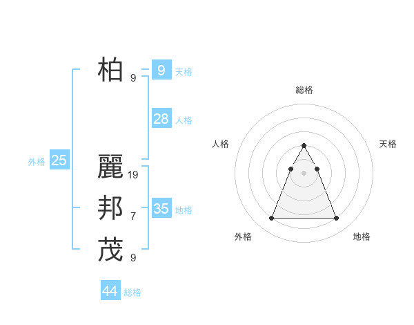 柏 麗邦茂さんの総格は44画の2点!