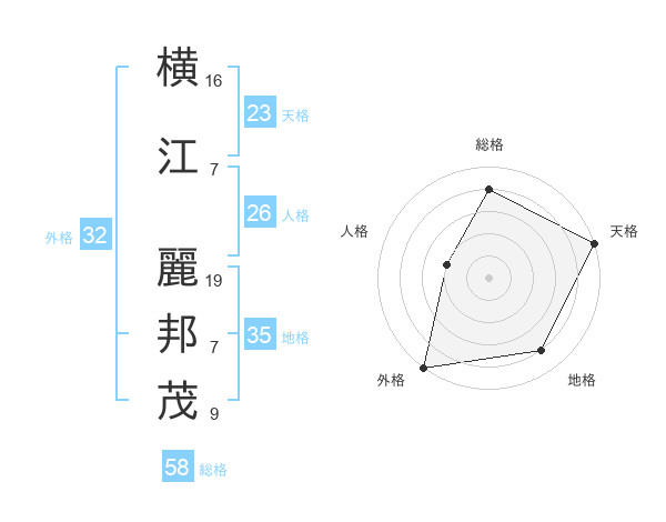 横江 麗邦茂さんを姓名の画数から五運を鑑定