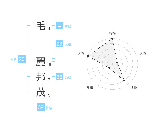 毛 麗邦茂さんを姓名の画数から五運を鑑定