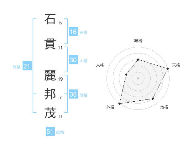 石貫 麗邦茂さんを姓名の画数から五運を鑑定