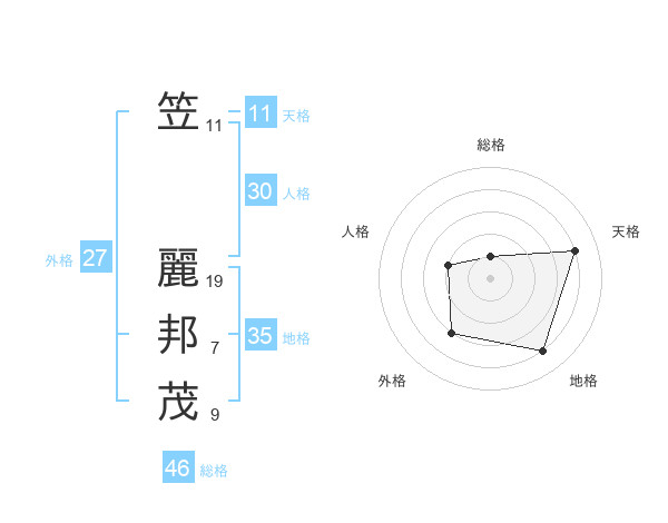 笠 麗邦茂さんの天格は11画の4点!