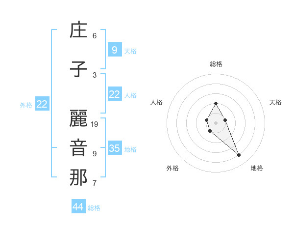 庄子 麗音那さんを姓名の画数から五運を鑑定