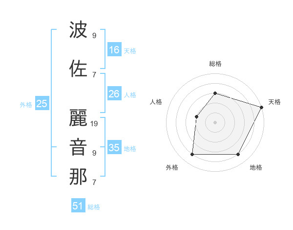 波佐 麗音那さんを姓名の画数から五運を鑑定