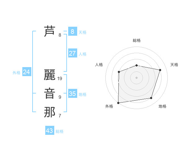 芦 麗音那さんの外格は24画の5点!