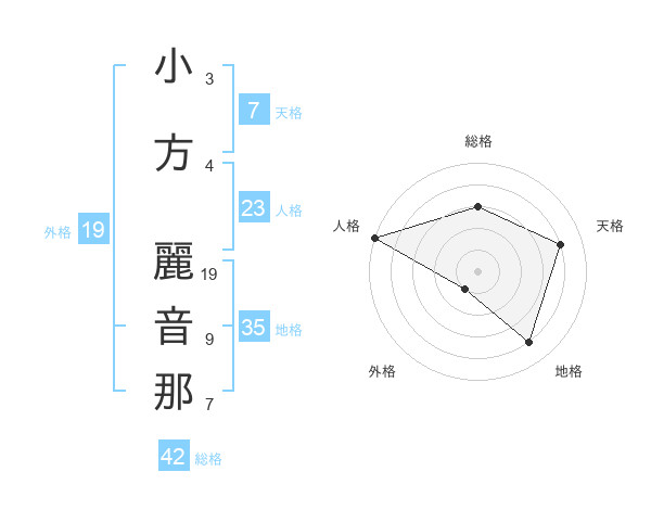 小方 麗音那さんを姓名の画数から五運を鑑定