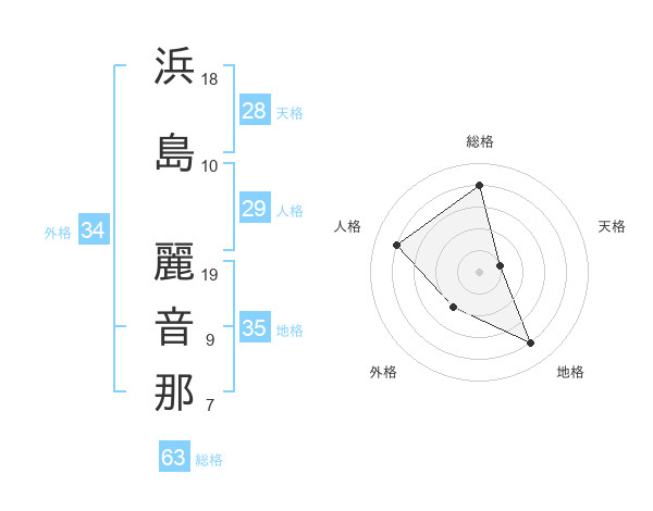 浜島 麗音那さんを姓名の画数から五運を鑑定