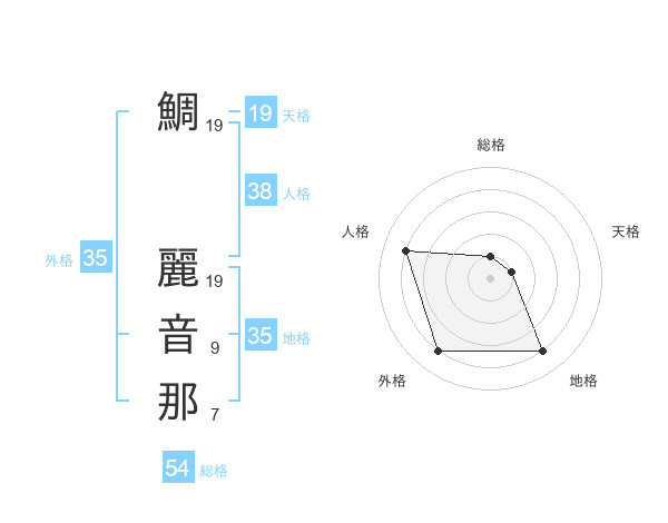 鯛 麗音那さんを姓名の画数から五運を鑑定