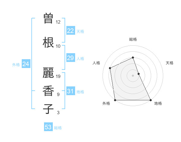 曽根 麗香子さんの総格は53画の3点!