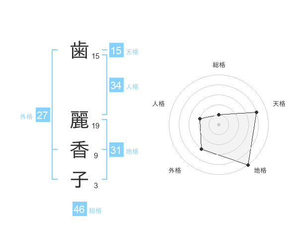 歯 麗香子さんの天格は15画の4点!