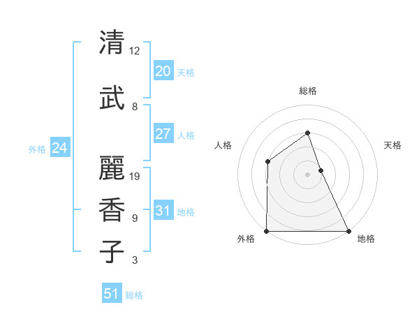 清武 麗香子さんを姓名の画数から五運を鑑定