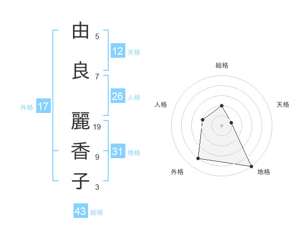 由良 麗香子さんを姓名の画数から五運を鑑定
