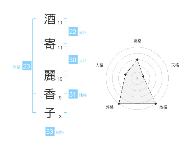 酒寄 麗香子さんを姓名の画数から五運を鑑定
