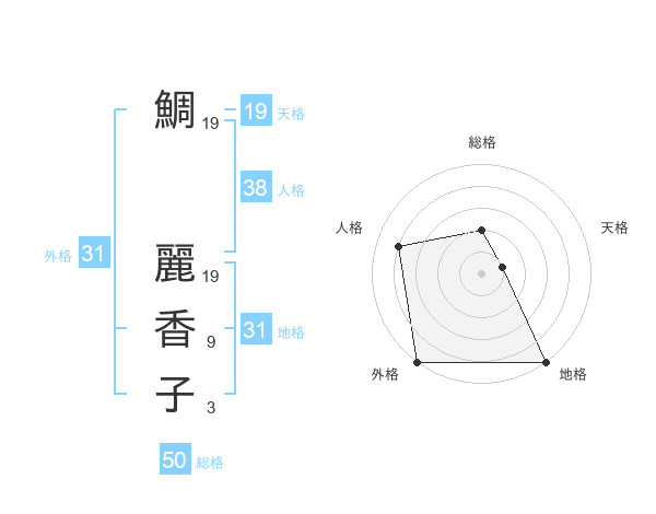鯛 麗香子さんを姓名の画数から五運を鑑定