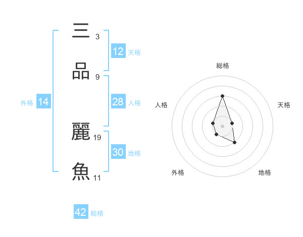 三品 麗魚さんを姓名の画数から五運を鑑定