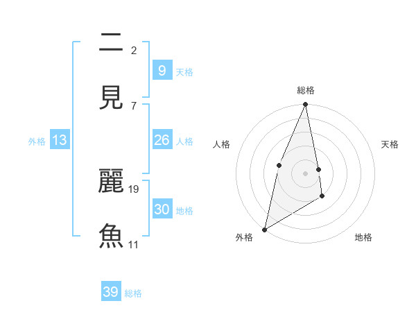 二見 麗魚さんの総格は39画の5点!