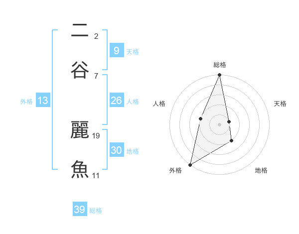 二谷 麗魚さんの総格は39画の5点!