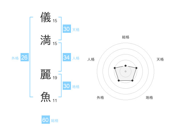 儀満 麗魚さんを姓名の画数から五運を鑑定