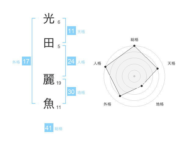 光田 麗魚さんの総格は41画の5点!