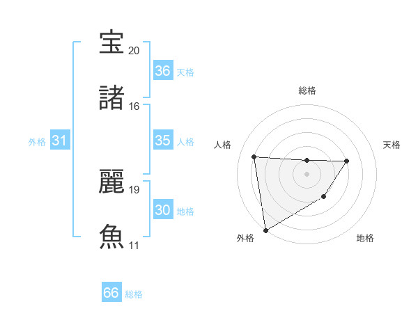 宝諸 麗魚さんを姓名の画数から五運を鑑定