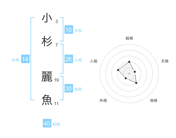 小杉 麗魚さんを姓名の画数から五運を鑑定