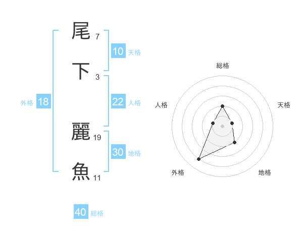 尾下 麗魚さんを姓名の画数から五運を鑑定