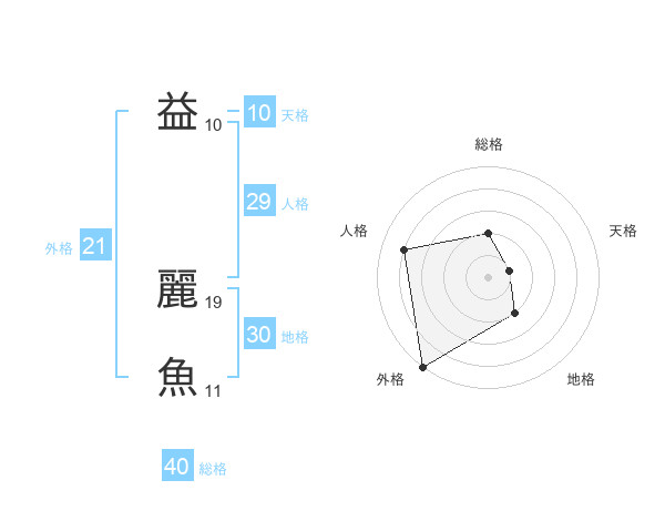 益 麗魚さんの外格は21画の5点!