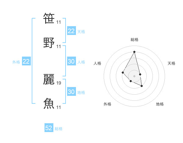 笹野 麗魚さんを姓名の画数から五運を鑑定