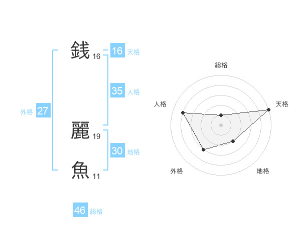 銭 麗魚さんの総格は46画の1点!