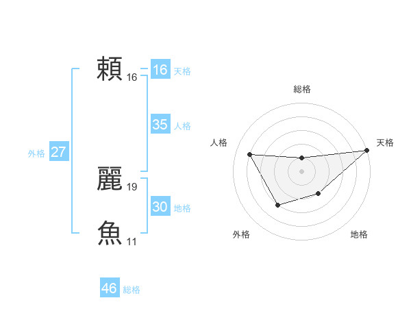 頼 麗魚さんの総格は46画の1点!