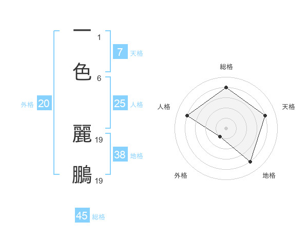 一色 麗鵬さんの総格は45画の4点!
