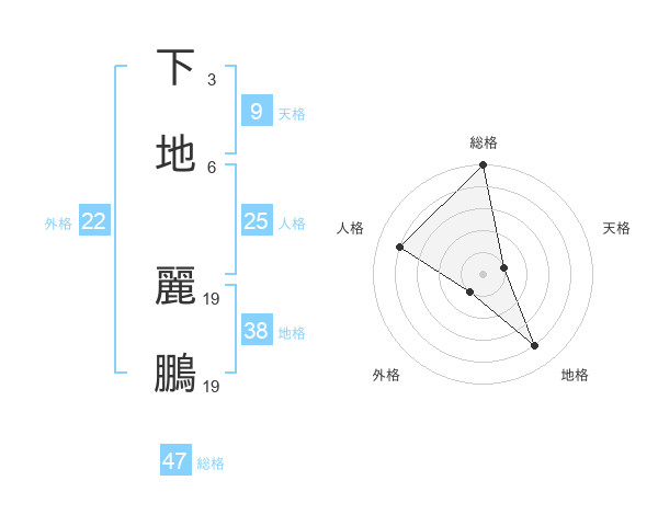 下地 麗鵬さんを姓名の画数から五運を鑑定