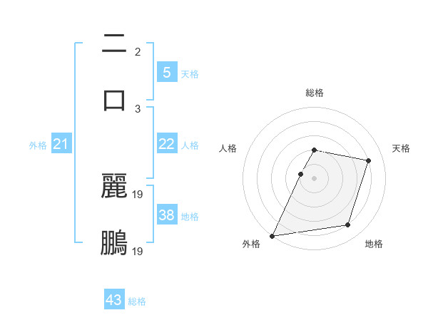 二口 麗鵬さんを姓名の画数から五運を鑑定