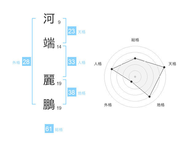 河端 麗鵬さんを姓名の画数から五運を鑑定