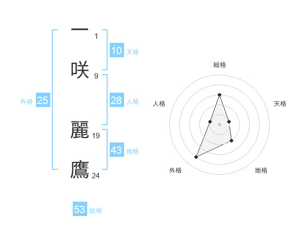 一咲 麗鷹さんを姓名の画数から五運を鑑定