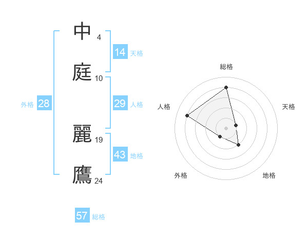 中庭 麗鷹さんを姓名の画数から五運を鑑定