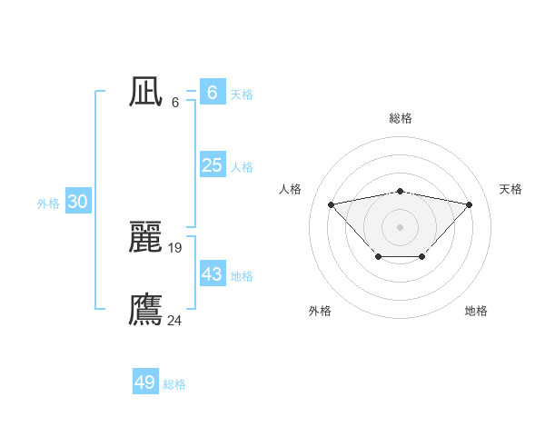 凪 麗鷹さんの天格は6画の4点!