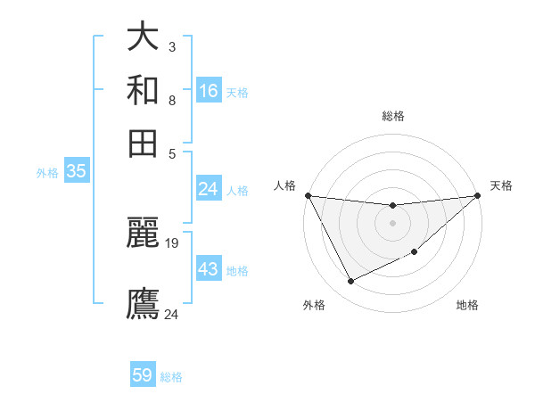 大和田 麗鷹さんを姓名の画数から五運を鑑定