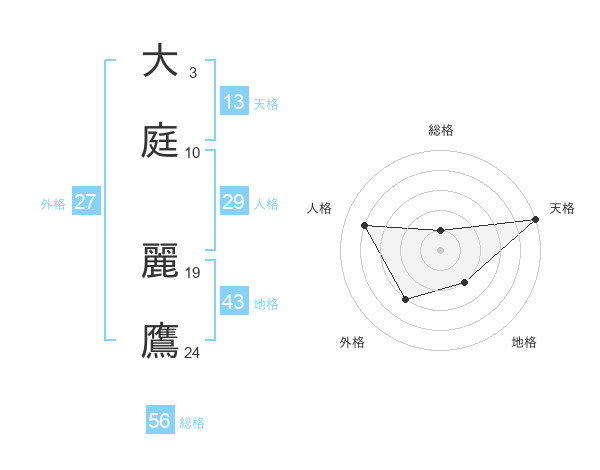 大庭 麗鷹さんを姓名の画数から五運を鑑定
