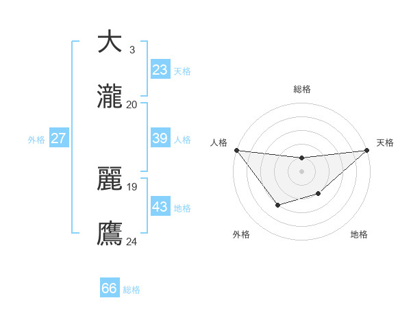 大瀧 麗鷹さんを姓名の画数から五運を鑑定