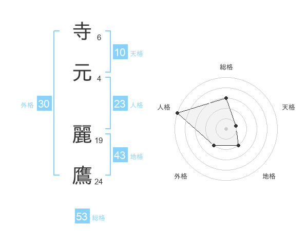 寺元 麗鷹さんを姓名の画数から五運を鑑定