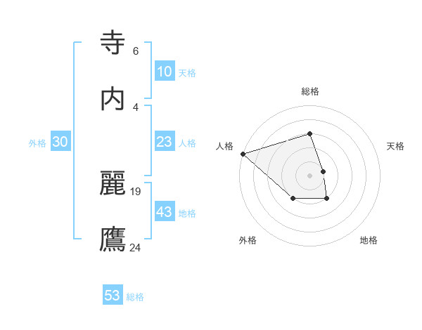 寺内 麗鷹さんの総格は53画の3点!