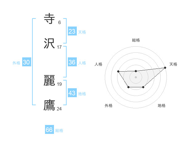 寺沢 麗鷹さんの総格は66画の1点!