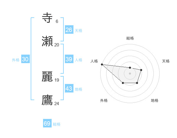 寺瀬 麗鷹さんの総格は69画の1点!