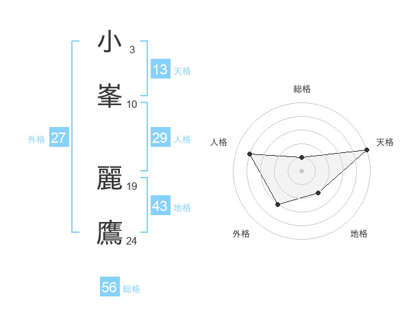 小峯 麗鷹さんを姓名の画数から五運を鑑定