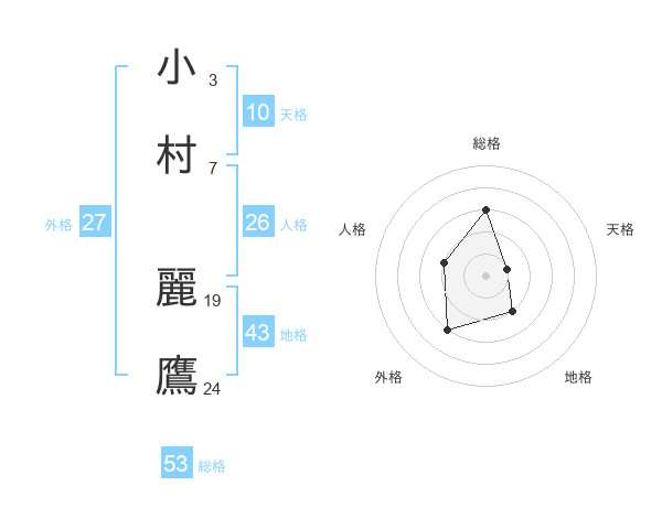 小村 麗鷹さんを姓名の画数から五運を鑑定