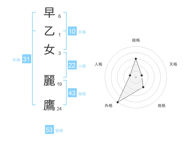 早乙女 麗鷹さんを姓名の画数から五運を鑑定