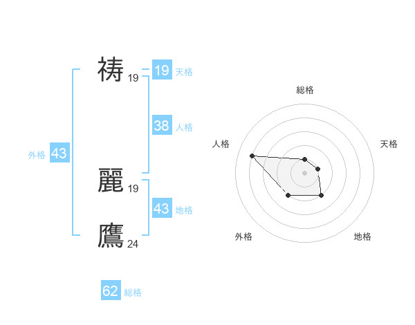祷 麗鷹さんの総格は62画の1点!