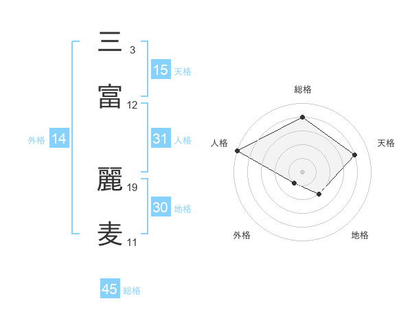 三富 麗麦さんを姓名の画数から五運を鑑定