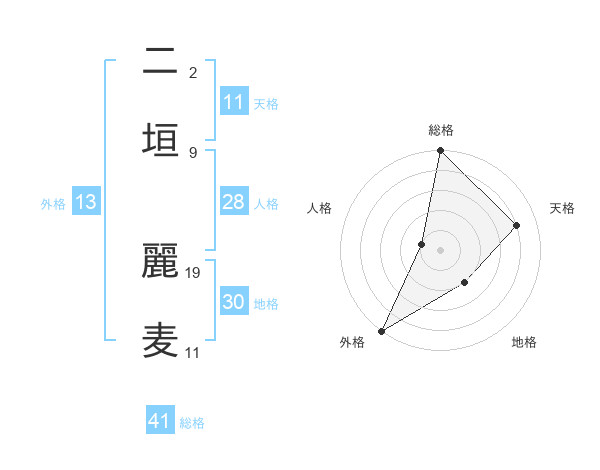 二垣 麗麦さんを姓名の画数から五運を鑑定